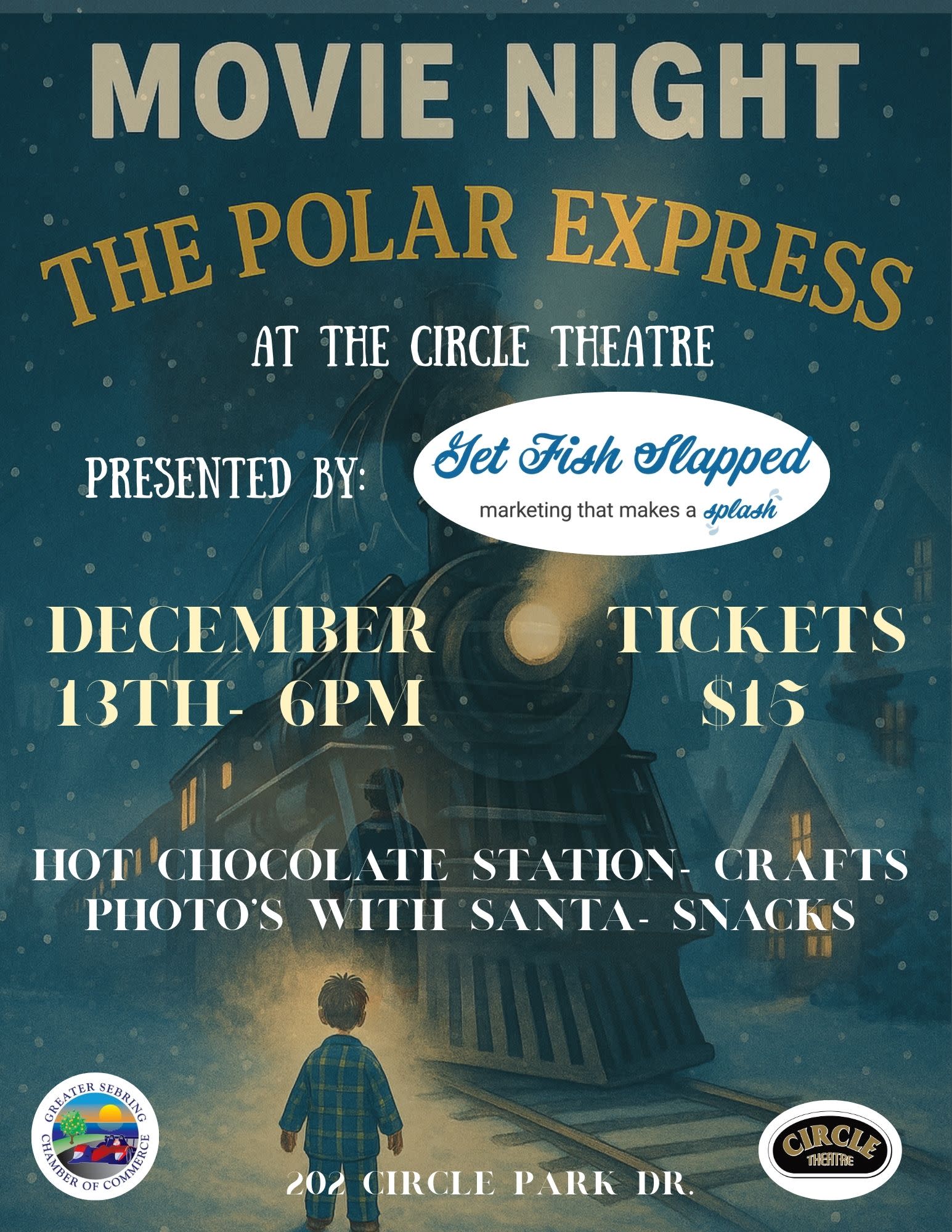 🚂❄️ Get ready for an enchanting evening of holiday magic and fun for the whole family! Join us for The Polar Express Movie Night, Presented by Get Fish Slapped, where we’ll begin with festive activities and then settle in for this heartwarming holiday classic.