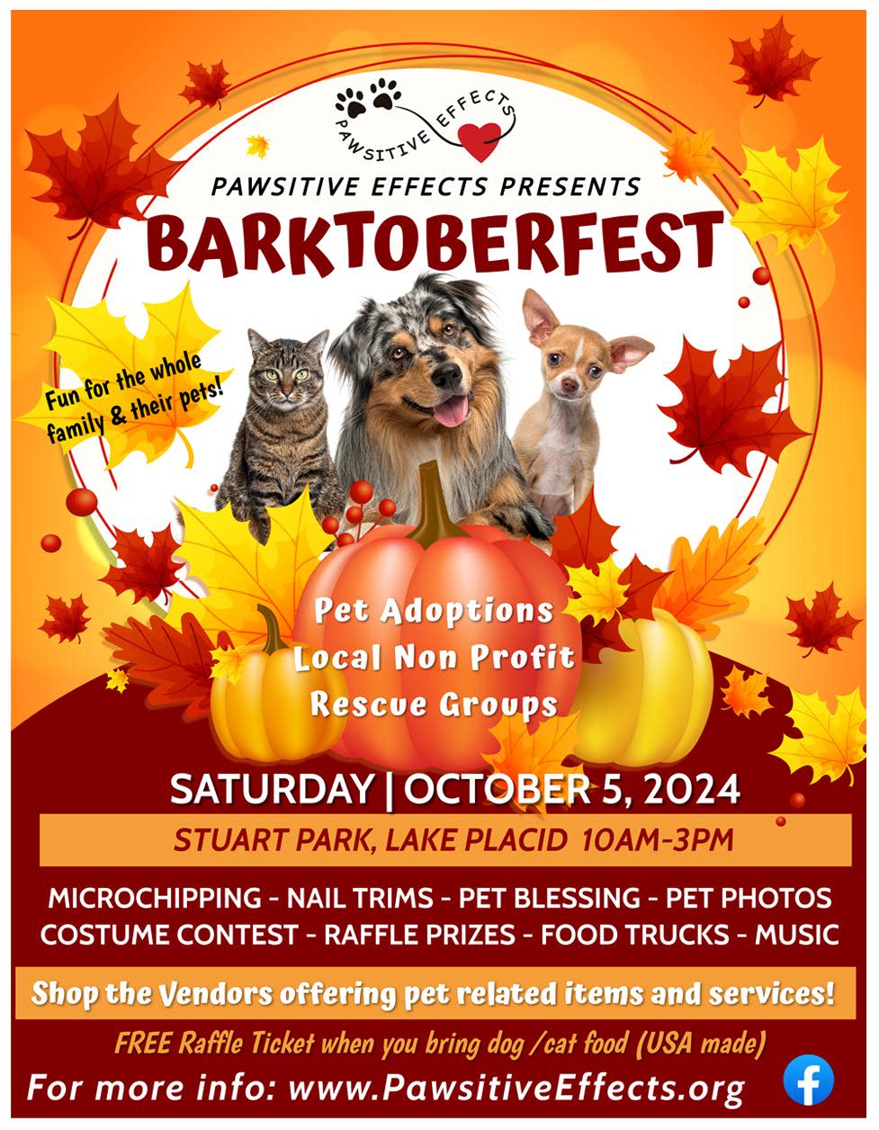 The park will transform into a hub of pet adoptions and family-friendly activities. Kids, leashed pets, and the entire family can enjoy a range of entertainment. Explore unique items from our fantastic vendors, specially curated for both you and your pets. Indulge in delicious food, groove to great music, and test your luck with our amazing raffle prizes.