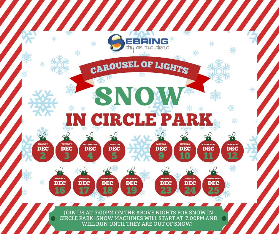 *Weather will determine if Carousel of Lights will be open. If you are unsure of the status, please call City Hall or check the City of Sebring social media!